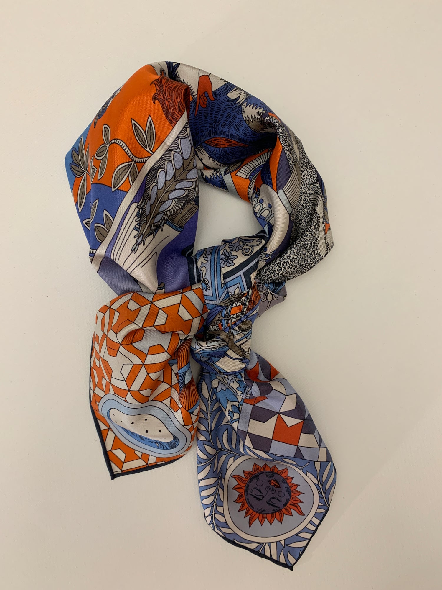 Immerse yorself in the power of your imagination and wrap yourself in Surreal World, Yenny's double sided 100% silk twill scarf, printed on both sides in different colours offers excellent value. Two scarves in one, to compliment and give inspiration to any outfit you choose.